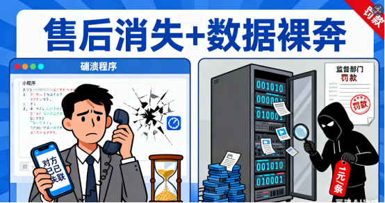 更吓人的是数据问题!有个开美妆店的老板,偶然在二手数据平台发现:自己小程序里的会员手机号、消费记录,居然被明码标价卖(一条 1 块钱)。后来才知道,低价服务商为了省成本,用的是 “无加密的廉价服务器”,几十家企业的数据堆在一起 “裸奔”—— 丢了、被卖了都没人管。现在国家对数据合规查得严,一旦客户信息泄露,不仅丢信任,还可能面临监管处罚(罚款少则几万,多则几十万),这可不是 “几百块” 能解决的麻烦!
